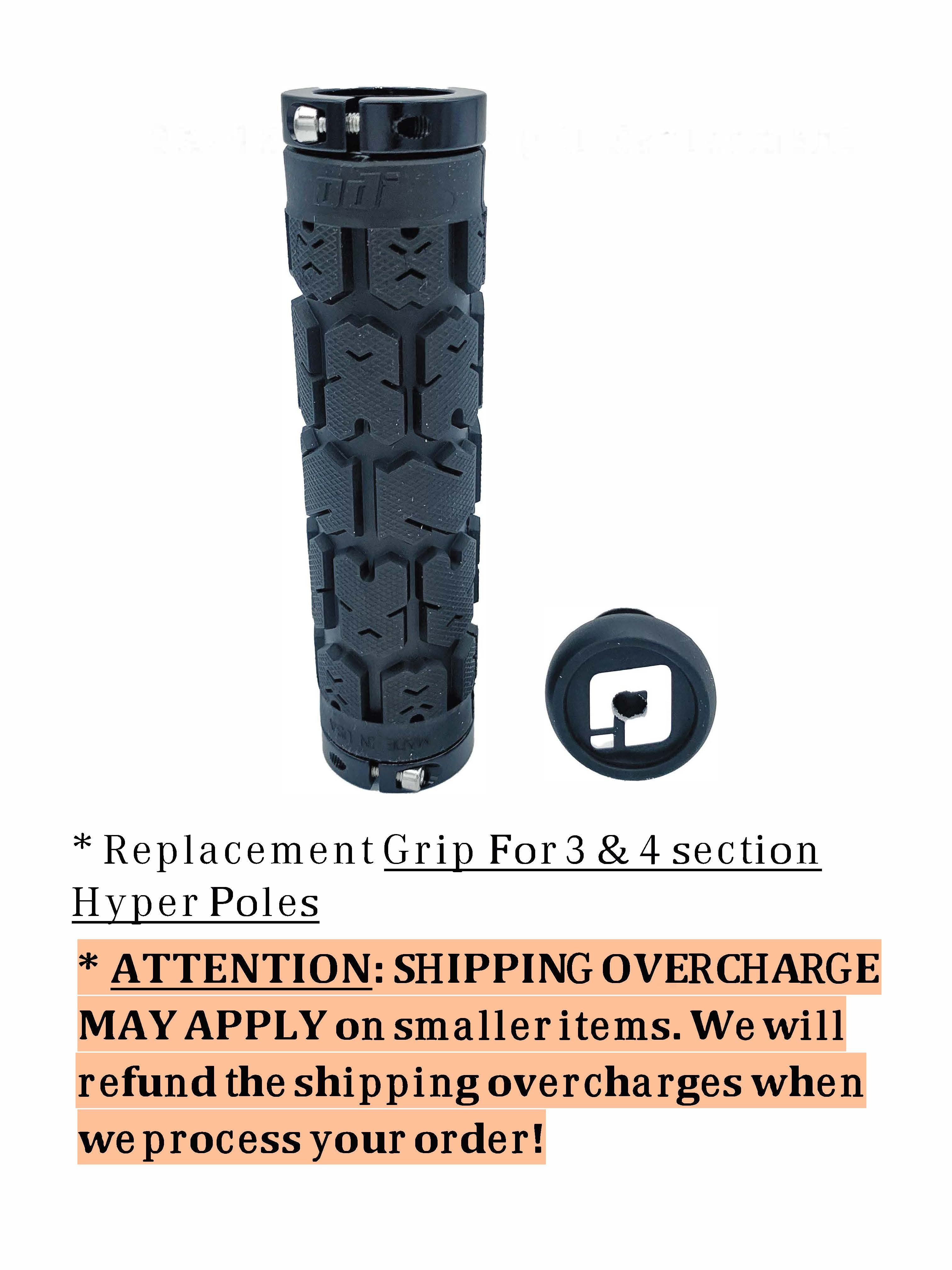 The Hyper Grip ll features felt Rubber with a Pinch clamp on the top and bottom to fasten the grip to the pole securely. A Mass air flow inlet for rapid air release from the Hyper Pole with a replaceable ergonomic end cap. End caps are special orders.
